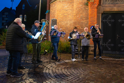 Los ging es an diesem Samstag um 16.30 Uhr. Pünktlich zum Beginn hörte auch der Regen etwas auf, sodass sich nach und nach immer mehr Besucher einfanden. Zu den Klängen des Saarner Posaunenchors füllte es sich dann auch langsam und gemeinsam wurden die ersten weihnachtlichen Lieder angestimmt. Besonders die kleineren Gäste wurden so langsam ungeduldig, hatte sich doch an diesem 06. Dezember jemand besonderes angekündigt.